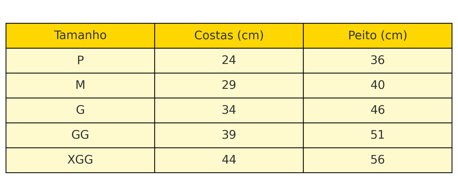 *Meça seu pet antes da compra e consulte a tabela de tamanhos disponível na página do produto para garantir o ajuste ideal.