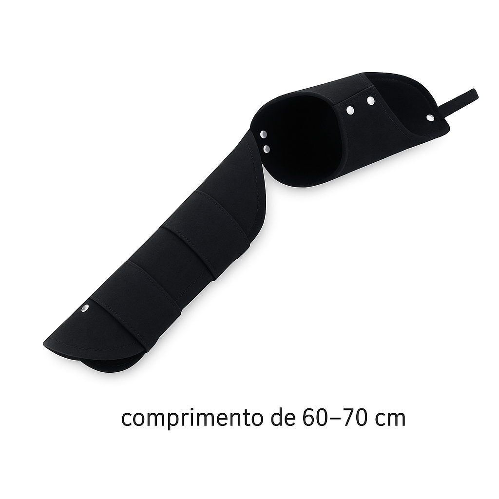 - Proteção total do braço: com 60 a 70 cm de comprimento, cobre do pulso ao cotovelo.