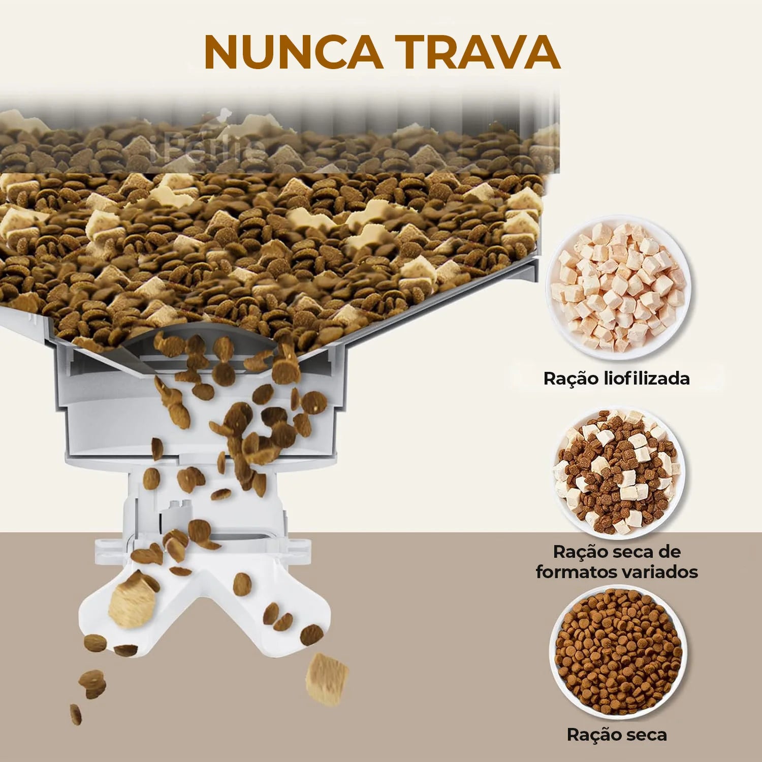 - Capacidade: Distribuição entre 50g e 2000g de ração