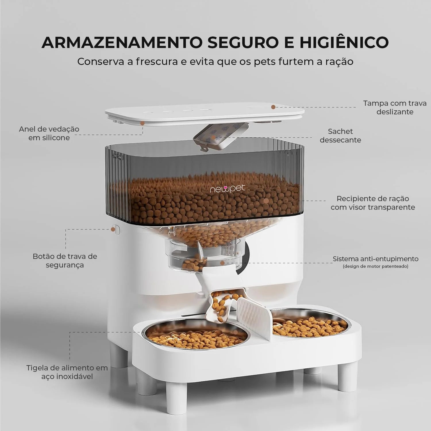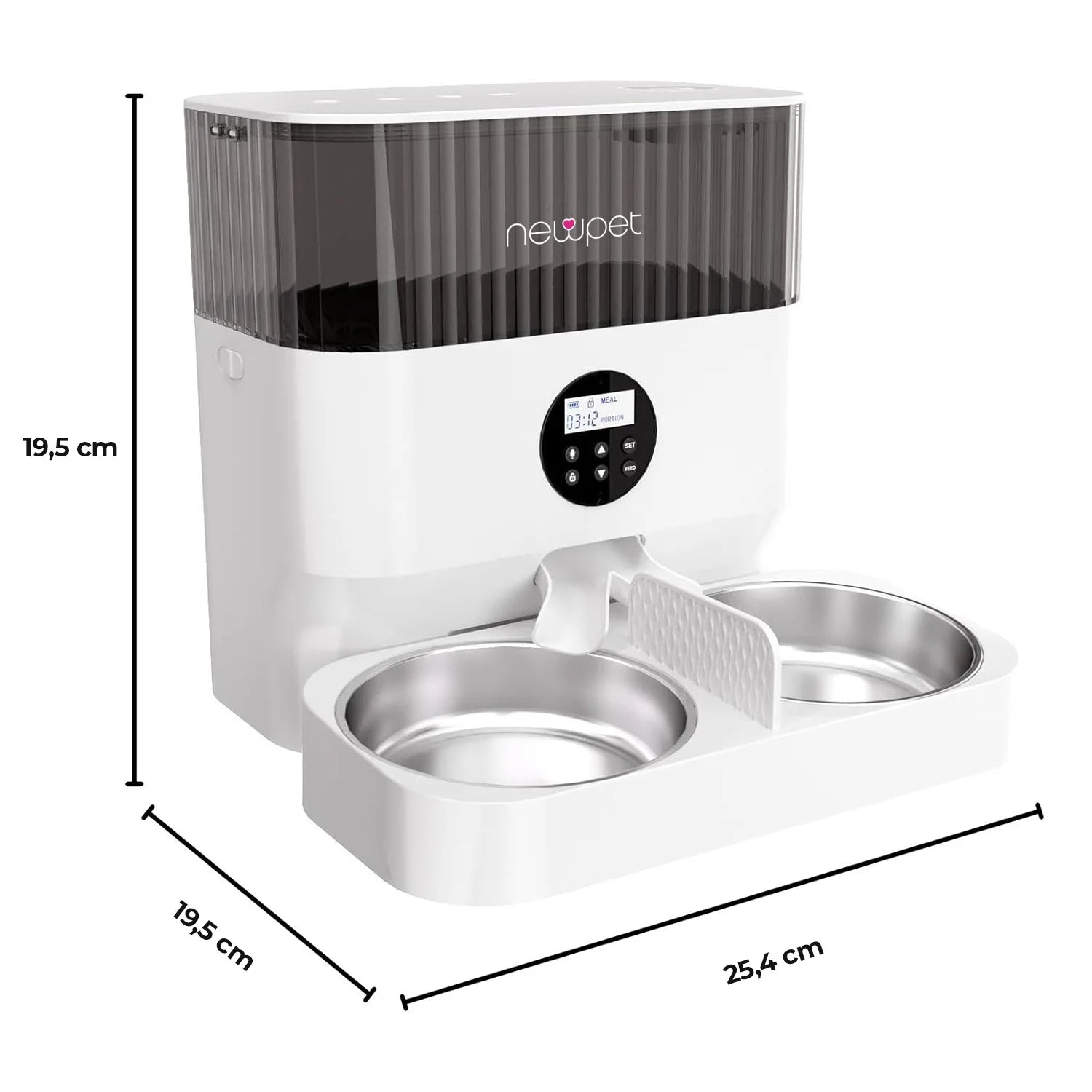 Newpet Dispensador Automático de Ração para Cães e Gatos com APP WiFi e Tigelas Duplas
