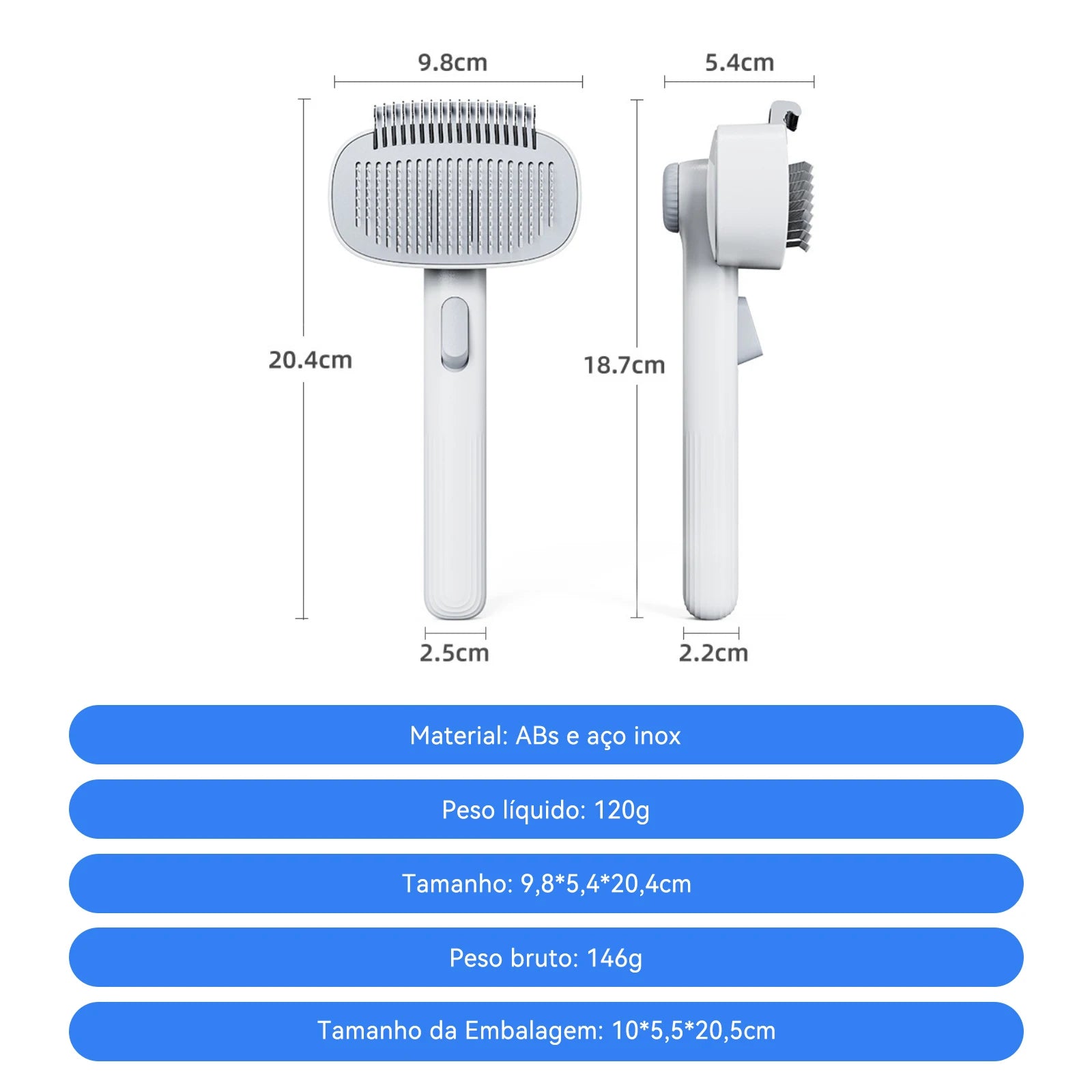 Além de ser funcional, a escova oferece um momento de conexão e cuidado entre tutor e pet. Seu design moderno e sistema de autolimpeza tornam o processo mais rápido e higiênico, ideal para quem busca praticidade no dia a dia.