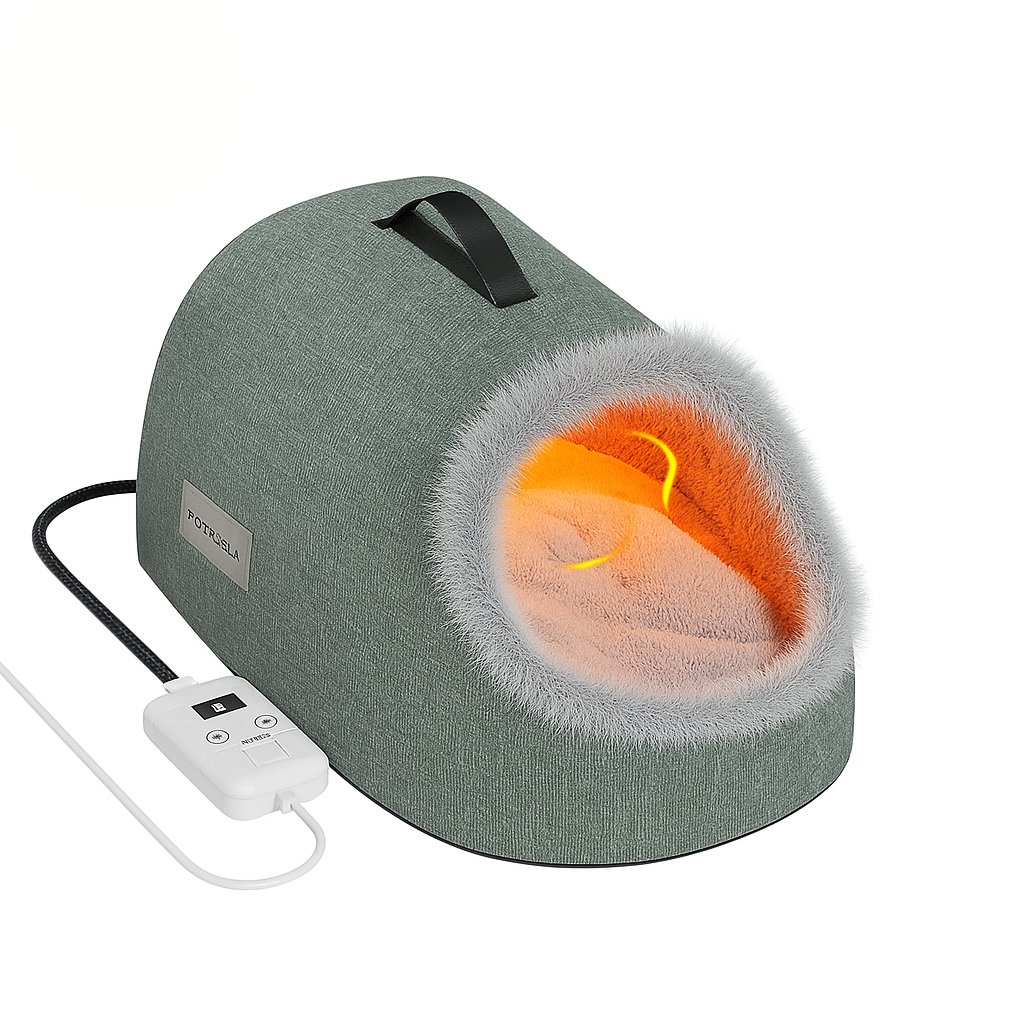 O sistema de aquecimento elétrico integrado mantém a temperatura constante, proporcionando um ambiente quentinho e seguro para o seu gato descansar tranquilamente. Seu design fechado ajuda a conservar o calor, enquanto o tecido isolante oferece conforto e proteção térmica.